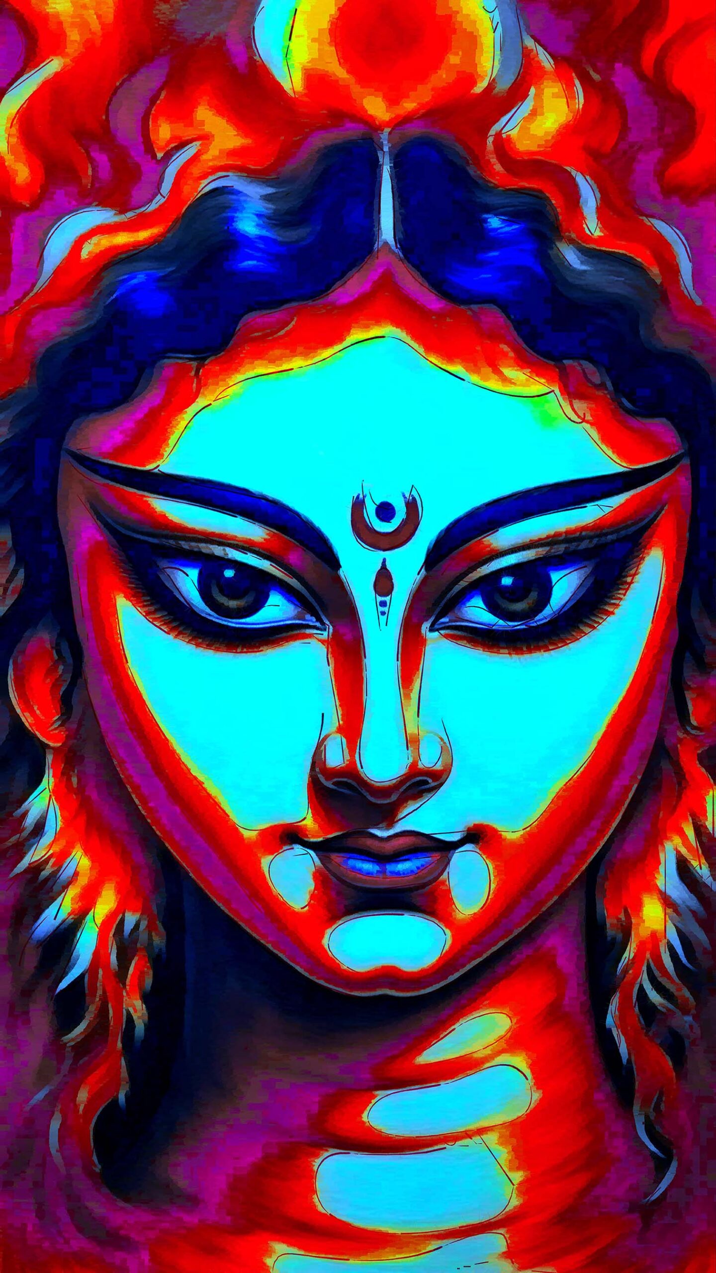 🖼️ This electrifying digital artwork of Goddess Durga captures the essence of divine feminine power. Her intense gaze, framed by flowing, flame-like hair and vibrant hues, evokes protection, courage, and spiritual awakening. The stylized composition blends traditional Indian portraiture with modern digital techniques, making it a striking centerpiece for any space. Whether you’re decorating a puja room, meditation corner, or contemporary living area, this high-resolution 21 x 36 inch (300 DPI) download offers emotional depth and cultural pride. Ideal for gifting, festivals, or personal inspiration. Available instantly worldwide.