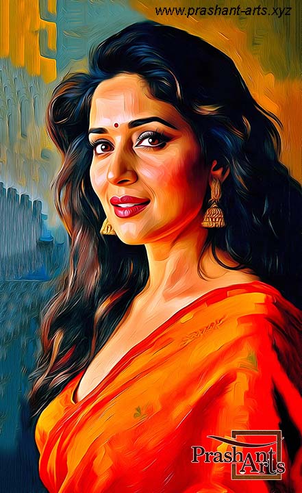 📦 A vibrant digital portrait of Madhuri Dixit, capturing her iconic beauty and grace. With painterly textures and rich cultural tones, this artwork is perfect for décor, gifting, or personal inspiration. A must-have for Bollywood lovers.